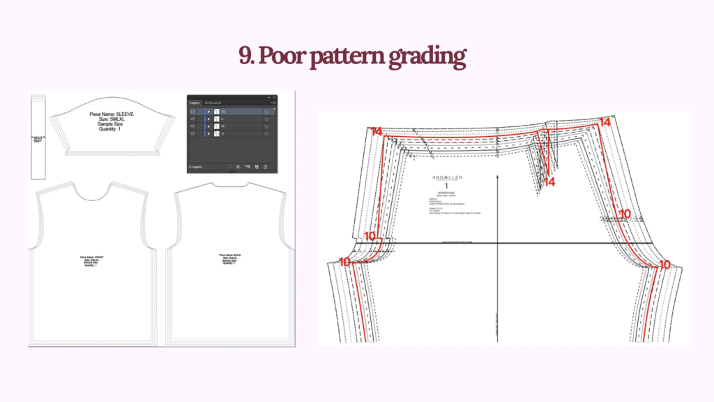 áá Pattern GradingáĄáŹá¸áááşá¸ááźááşá¸ (Poor pattern grading)