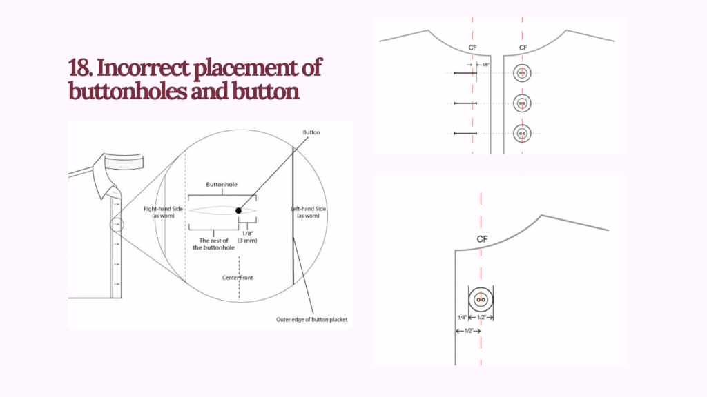 ááá ááźááşááŽá¸ááąáŤááşáá˛áˇ ááźááşááŽá¸ ááąááŹááťááŹá¸áážáŻ áážáŹá¸áá˝ááşá¸ááźááşá¸ (Incorrect placement of buttonholes/buttons)