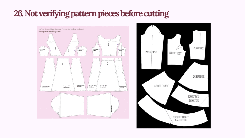 ááá áááźááşááąáŹááşáᎠPattern áĄáááŻááşá¸áĄá ááťáŹá¸ááᯠáá á áşááąá¸ááźááşá¸ (Not verifying pattern pieces before cutting (missing pieces)