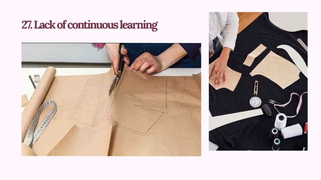 ááá Pattern ááźáŻááŻááşááŹáá˝ááşáĄáááşáááźááşááąáˇááŹáážáŻ/ááąáˇááťááˇáşáážáŻ ááážáááźááşá¸ (Lack of continuous learning/practice in pattern making)