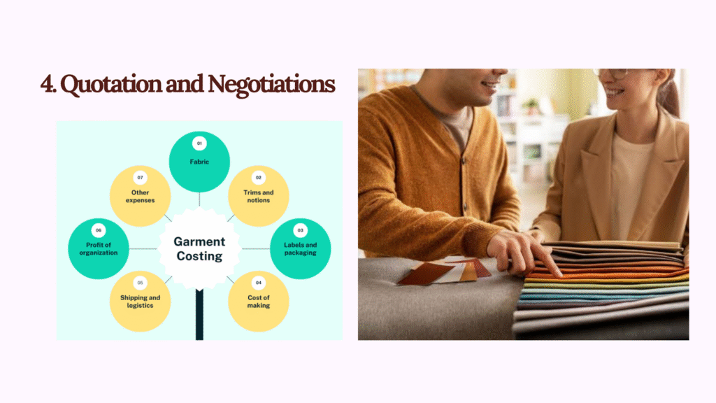 ¡ ááá°ááŹááá°ááźááşá¸ (Obtain Samples): Material ááᯠBulk Order ááážáŹáááşáážáŹ áááˇáşááąáŹáşáá˛áˇ áĄáááşáĄáá˝áąá¸áá˛áˇ áááŻááşááŽáážáŻáážáááážá á á áşááąá¸áááŻáˇáĄáá˝ááş ááąááťáŹááąáŤááş ááá°áᏠ(Sample Swatches/Strike-offs) áá˝áąááᯠááá°ááźáŽá¸ á á áşááąá¸áááŤáááşá ááŽáĄááťááşáᏠáĄá áááźáąáŹáá˛áˇáá˛áˇ ááŽáááŻááşááŹááááşáá˝áą ááźáŻáśáá˝áąáˇáá˛áˇááá˛áˇ ááźáżááŹáá˛áˇ áĄáááşá¸áĄááźá áşáá áşáᯠááźá áşááŤáááşá áá°á áĄáááşáĄááťááŻá¸áĄá áŹá¸áááŻáᲠááźáąáŹááźáŽá¸ áĄáááĄááť ááá°ááŹáá á áşááąá¸áááááŻáˇ ááŽáááŻááşá¸áá˛áˇ ááŻáśá¸áááááŻááşáááşáá˛áˇ áá°áá°áá°áĄáááş ááąáŹááşááŹááźáŽá¸ Collection áá áşááŻááŻáśá¸ áá˝ážáąáˇáááŻááşá¸áá˛áˇáááŤáááşá