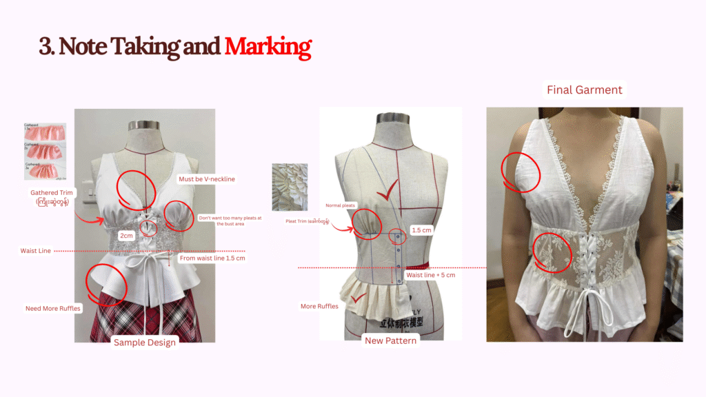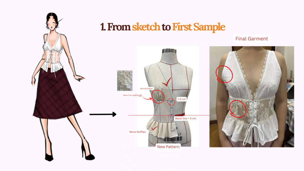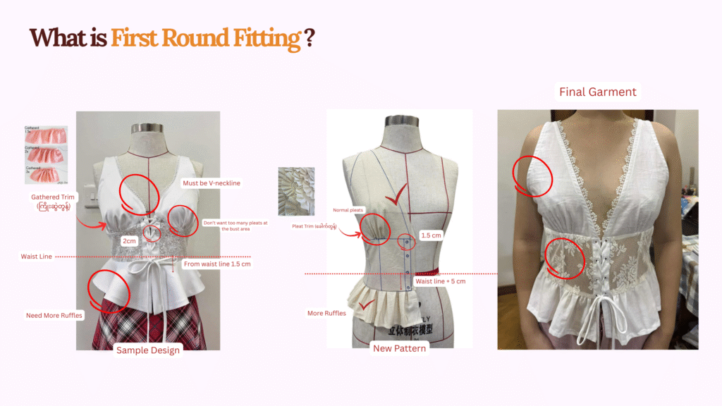 Prototype/Sample Production áĄáá˝ááş áááááŻáśá¸áĄááźáááş áááşá ááşá¸ááźááşá¸ (First Fitting Round) áááŻááŹááŹáá˛á