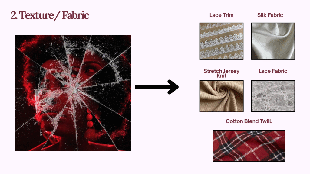 2. Textures/Fabrics : ááŽáááŻááşá¸áážáŹ áááşááᯠFabric á áááşááᯠTexture ááťááŻá¸áá˝áąááᯠááŻáśá¸ááá˛?á áááŻá¸ááŹá¸á ááťááşááŹá¸á ááŹá¸ááąá ááááşá ááźááşá¸á áᏠá ááŹáá˝áąáá˛áˇ ááá°ááŹá áá˝áąááᯠMood board ááąáŤáşáážáŹ áááşáááŻááşááŤáááşá áĽáááŹ- “ááźááşá¸áááşá¸ááąáŹ áááŹá” áááŻáááş ááťážáąáŹáşáááşááźááşá¸á ááááşá ááźááşá¸ á ááŹáá˝áą ááŤááŹáááŻááşááŤáááşá