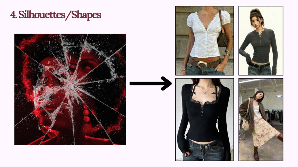 - Focal Point: Mood board áá˛áˇ main target áážáŹ Concept áá˛áˇ áĄááááĄááťááŻáśá¸ Inspiration image (áááŻáˇ) Silhouettes (áááŻáˇ) Colors ááᯠááŹá¸ááŤá ááŤááž ááźááˇáşáááŻááşááŹáá˛áˇ áááááŻáśá¸ áĄáŹááŻáśá ááŻááşáááážáŹááŤá