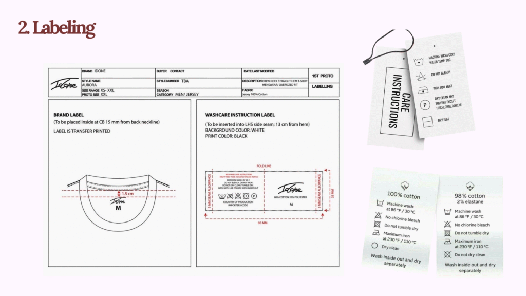 áá ááśááááşáááşááźááşá¸ (Tagging & Labelling):áĄáááşáĄáááşáážáŹ áááşááá˛áˇ ááśááááşáá˝áą (Brand Label, Care Label, Size Label)á ááąá¸áážáŻááşá¸ááśááááş (Price Tag) áá˝áąááᯠáááşáááşáááŤáááşá