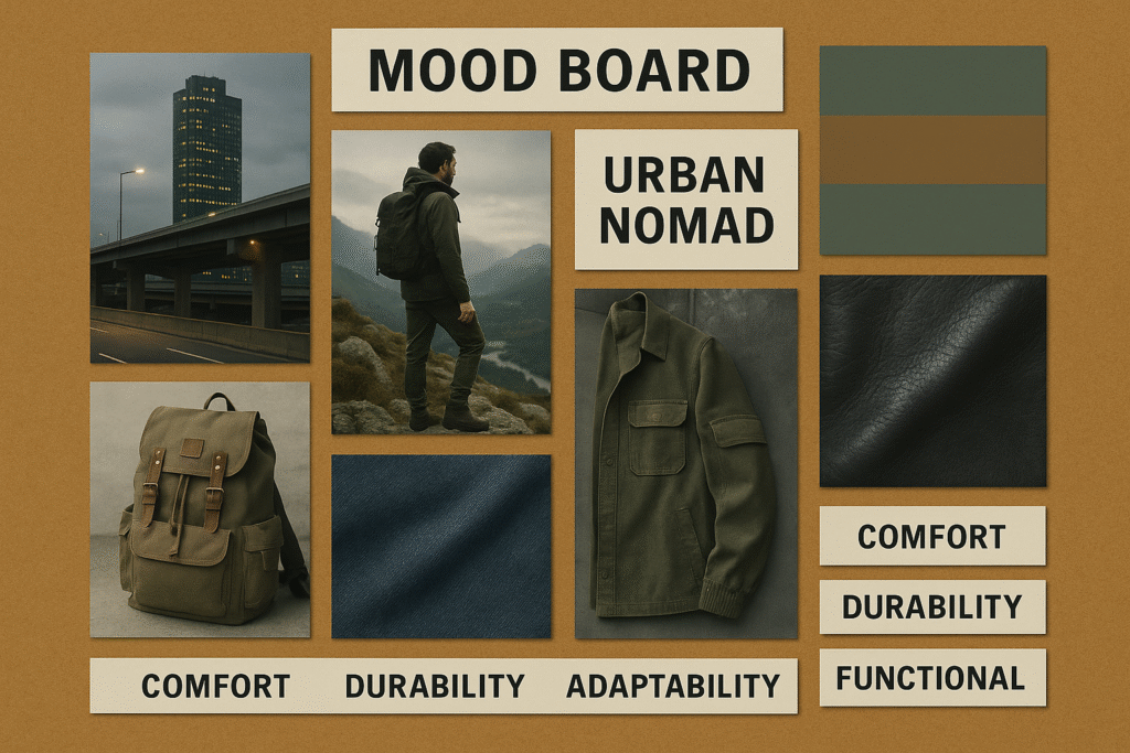 – áĄá˛áˇááŽááŻáśáá˝áąááᯠCanva áá˛áážáŹ áááˇáşááźáŽá¸ Industrial Gray, Earthy Brown, Dusty Green áááŻáá˛áˇ áĄááąáŹááşááŻáśá¸ááąáŹááşááᯠáĄáááááŹá¸ááźáŽá¸ Colour Palette áááˇáşáá˝ááşá¸áá˛áˇáááşá Comfort, Durability, Adaptability, Functional áááŻáá˛áˇ Keywords áá˝áąáááŻáááşá¸ áááŻááşáááˇáşáá˛áˇáááşá áá°áˇáá˛áˇ Mood board á áĄáááşáĄá áŹá¸ ááŻáśááźááşá¸áá áşááťááşááá˝á˛áááşááááşá¸á Collection áá˛áˇ ááśá áŹá¸ááťááşá áĄááąáŹááşá ááŻáśá áśá ááŽáááŻááşá¸áá˛áˇ áĄáážá áşááŹáááᯠáĄááźááˇáşáĄá ááąáŹáşááźááąá¸áááŻááşáá˛áˇáááşá ááŽááᯠMood board ááźáąáŹááˇáşáᲠáá°áˇáá˛áˇ Collection á áá áşááŹá¸áááşá¸ááťááźáŽá¸ áĄáąáŹááşááźááşáá˛áˇ Collection áá áşáᯠááźá áşááŹáá˛áˇááŤáááşá