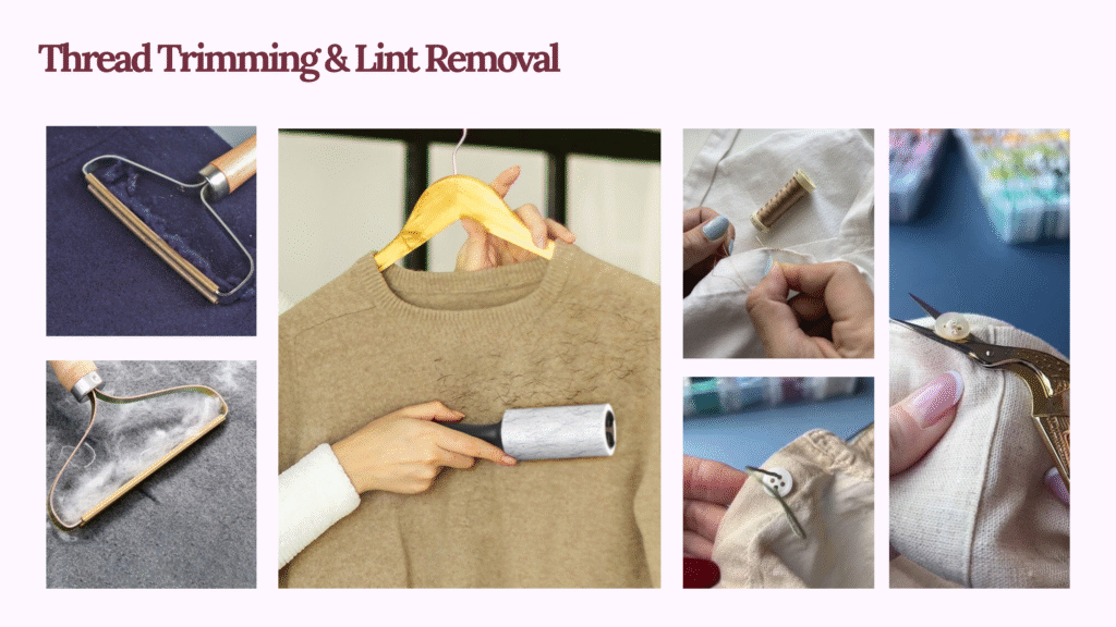 (2) ááťááşá ááťáŹá¸á áĄáážááŻááşááťáŹá¸ áážááşá¸áááşá¸ááźááşá¸ (Thread Trimming & Lint Removal)