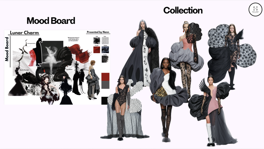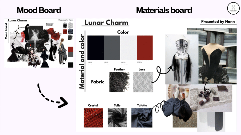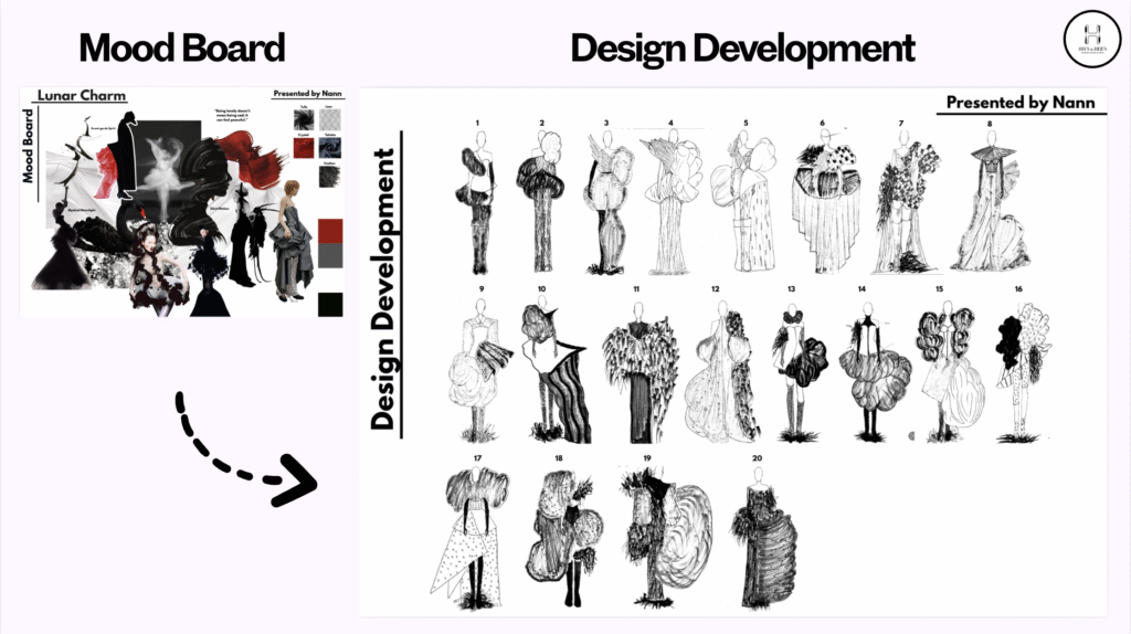 – စနစ်တကျဖန်တီးမှု (Systematic Approach): Mood board ကနေစပြီး Concept, Sketch, Collection အဆင့်ဆင့်ကို စနစ်တကျ လိုက်နာပါ။