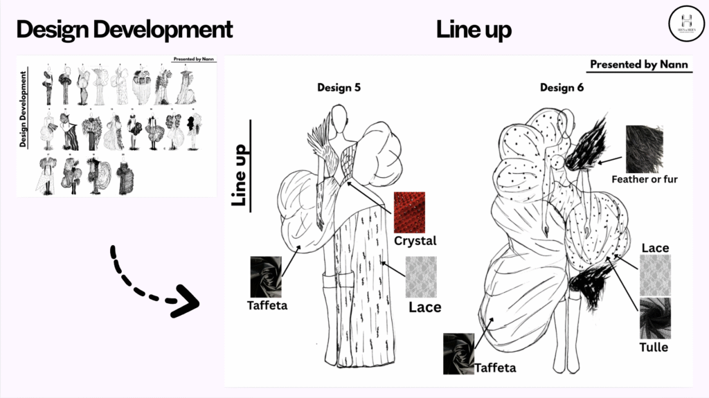 4. စျေးနှုန်းနှင့်စီးပွားရေးအမြင် (Pricing & Commercial Viability): ဒီဇိုင်းတွေအားလုံးက အနုပညာဆန်နေဖို့ မလိုပါဘူး။ ရောင်းတန်းဝင်တဲ့၊ ပရိသတ် တကယ်ဝယ်ဝတ်နိုင်တဲ့ ဒီဇိုင်းတွေလည်း ပါဝင်ဖို့ လိုပါတယ်။ သင်ရဲ့ ဖက်ရှင် Brand က ဘယ်လို အဝတ်အစား အမျိုးအစားကို ဦးတည်တာလဲ။ High Fashion လား၊ Ready-to-Wear လား၊ ဒါမှမဟုတ် Fast Fashion လား။ ဒါတွေကိုလည်း စဉ်းစားရပါမယ်။