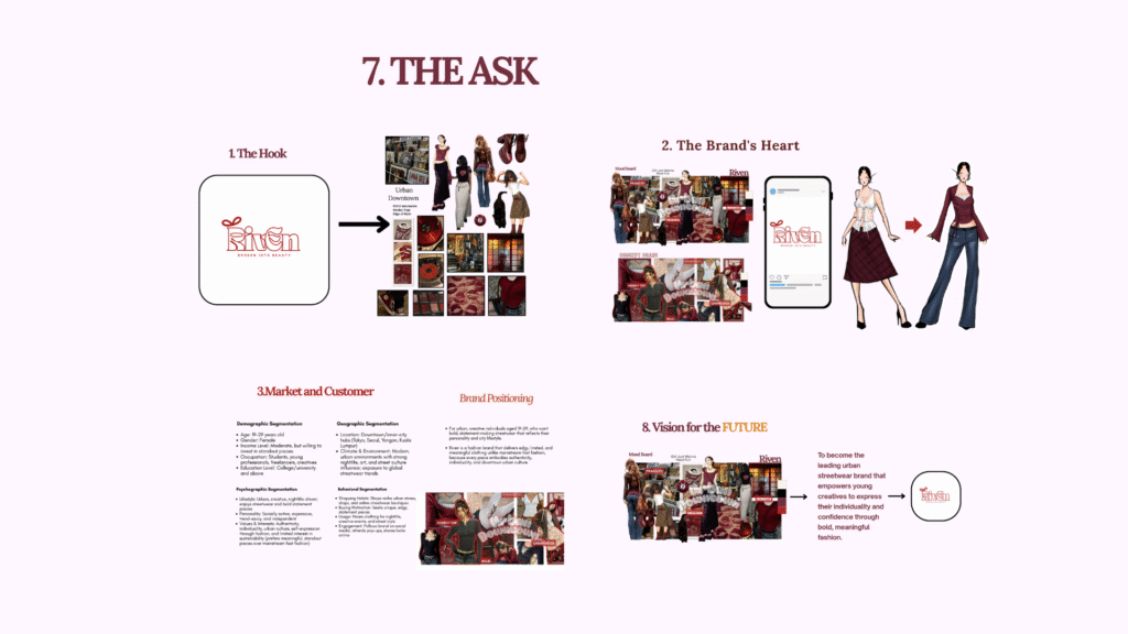 ááŻáśááźááşáážáŻáá˛áˇ á áááşáĄáŹá¸áááşáááşáážáŻ (Confidence & Passion): áááŻááˇáşáá˛áˇ áĄáážááşááśááááşáĄááąáŤáşááŹá¸áážááá˛áˇ á áááşáĄáŹá¸áááşáááşáážáŻááᯠááźáááŤá ááťááşááŻáśá¸ááťááşá¸ááŻáśááźáŽá¸ ááźáŻáśá¸áá˝ážááşá á˝áŹ ááźáąáŹáááŻááŤá- áážááşá¸áááşá¸ááźááşááŹá¸áážáŻ (Clarity & Conciseness): áááŻáááŻáážááşá¸áážááşá¸áá˛áˇ áĄááááĄááťááşáá˝áąááᯠááźáąáŹááŤá ááááŻáĄááşáá˛áˇ áĄááąá¸á áááşáá˝áą ááťááşááŹá¸ááŤá- ááźááşááŹáĄáąáŹááş ááźáááźááşá¸ (Visual Aids): áááŻááˇáşáá˛áˇ ááŽáááŻááşá¸ááŻáśáá˝áąá Lookbooká ááŤáážáááŻááş ááááˇáş áááşá áŻáśááá°ááŹááąá¸áá˝áąáááŻá፠áá°ááąáŹááşáá˝áŹá¸ááźáŽá¸ ááźááááŻááşáááş áĄááąáŹááşá¸ááŻáśá¸ááŤáá˛á