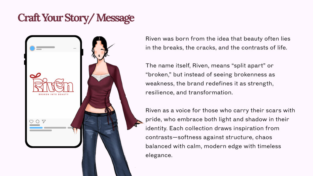 ဖက်ရှင်လောကမှာ Product ကောင်းတာတင်မကဘဲ၊ ကောင်းမွန်တဲ့ ပုံပြင်တစ်ခု ရှိဖို့ကလည်း အောင်မြင်မှုရဲ့ သော့ချက်တစ်ခုပါ။ လူတွေဟာ ပုံပြင်တွေကို ချစ်ကြပါတယ်။ ကိုယ့် Brand ရဲ့ ထူးခြားချက်၊ လှုံ့ဆော်မှု၊ ဖန်တီးမှုနောက်ကွယ်က ပုံပြင်ကို ဖော်ထုတ်ပါ။