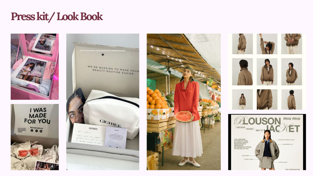 ▪️Press Kit: မီဒီယာတွေဆီ ပေးပို့ရမယ့် အချက်အလက်တွေ စုစည်းမှုပါ။ (Brand Story, Designer’s Bio, High-Resolution Photos of the Collection, Press Release, Contact Information)။